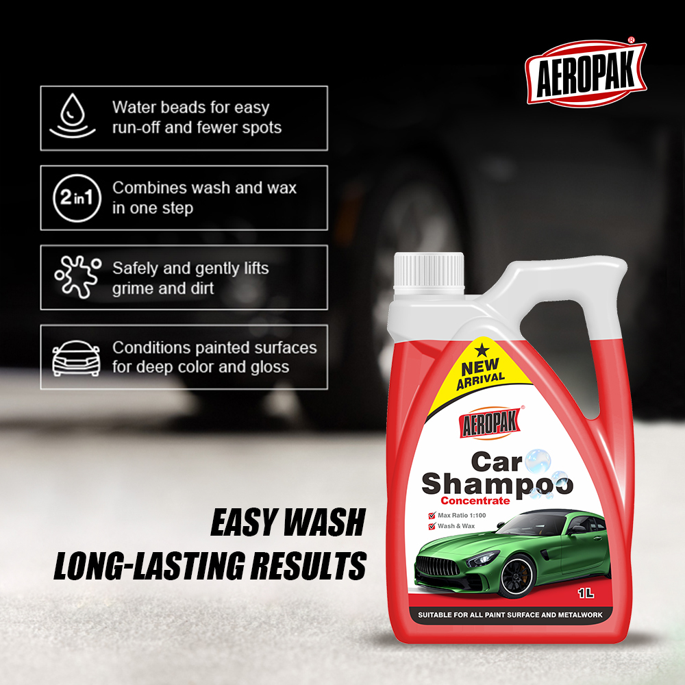 Le shampooing pour voiture AEROPAK est un mélange très concentré de tensioactifs lourds formulé pour fournir une fine mousse complète pour un nettoyage le plus efficace et la satisfaction du client.Il se rince facilement au froid ou au chaud.Il est un excellent mousseur de brosse, fournissant une lubrification maximale pour une durée de vie plus longue.
